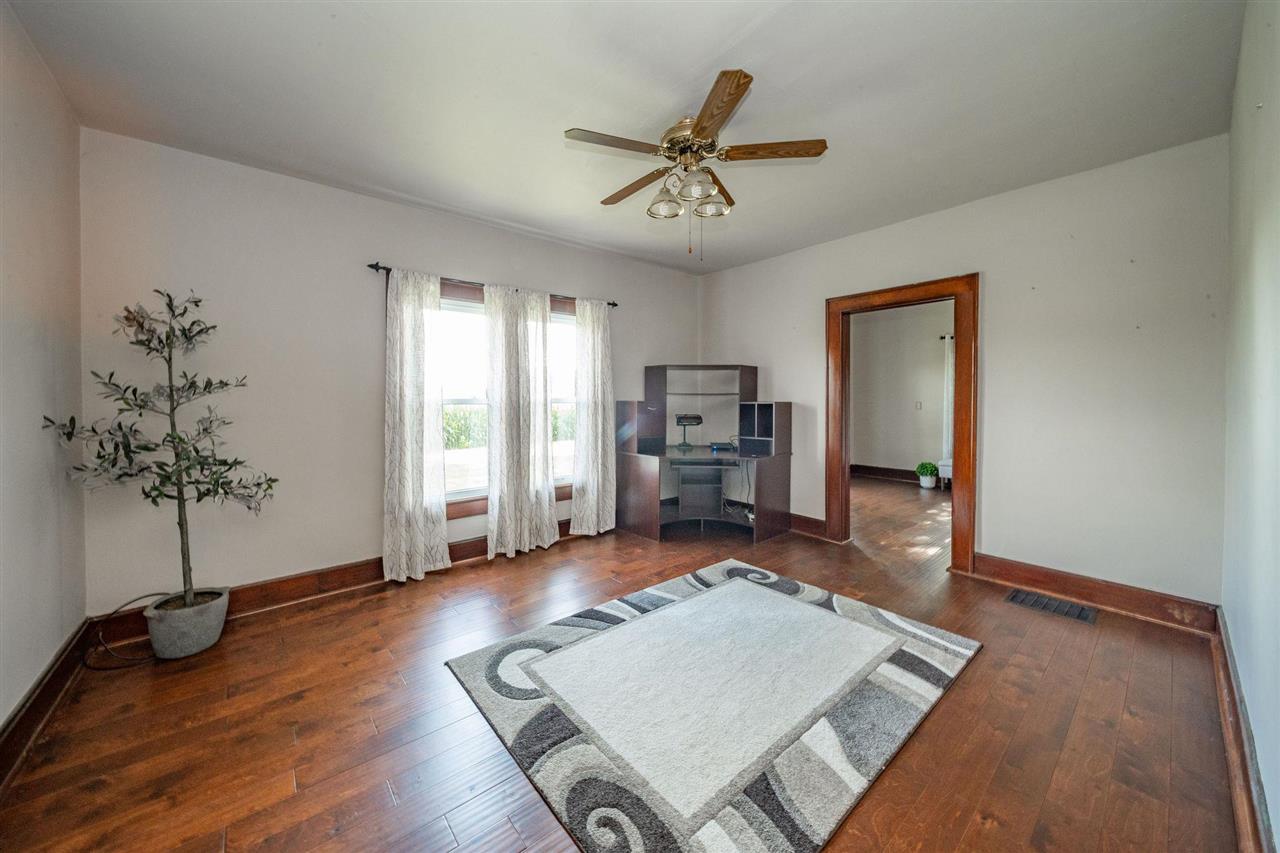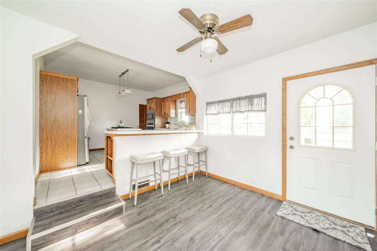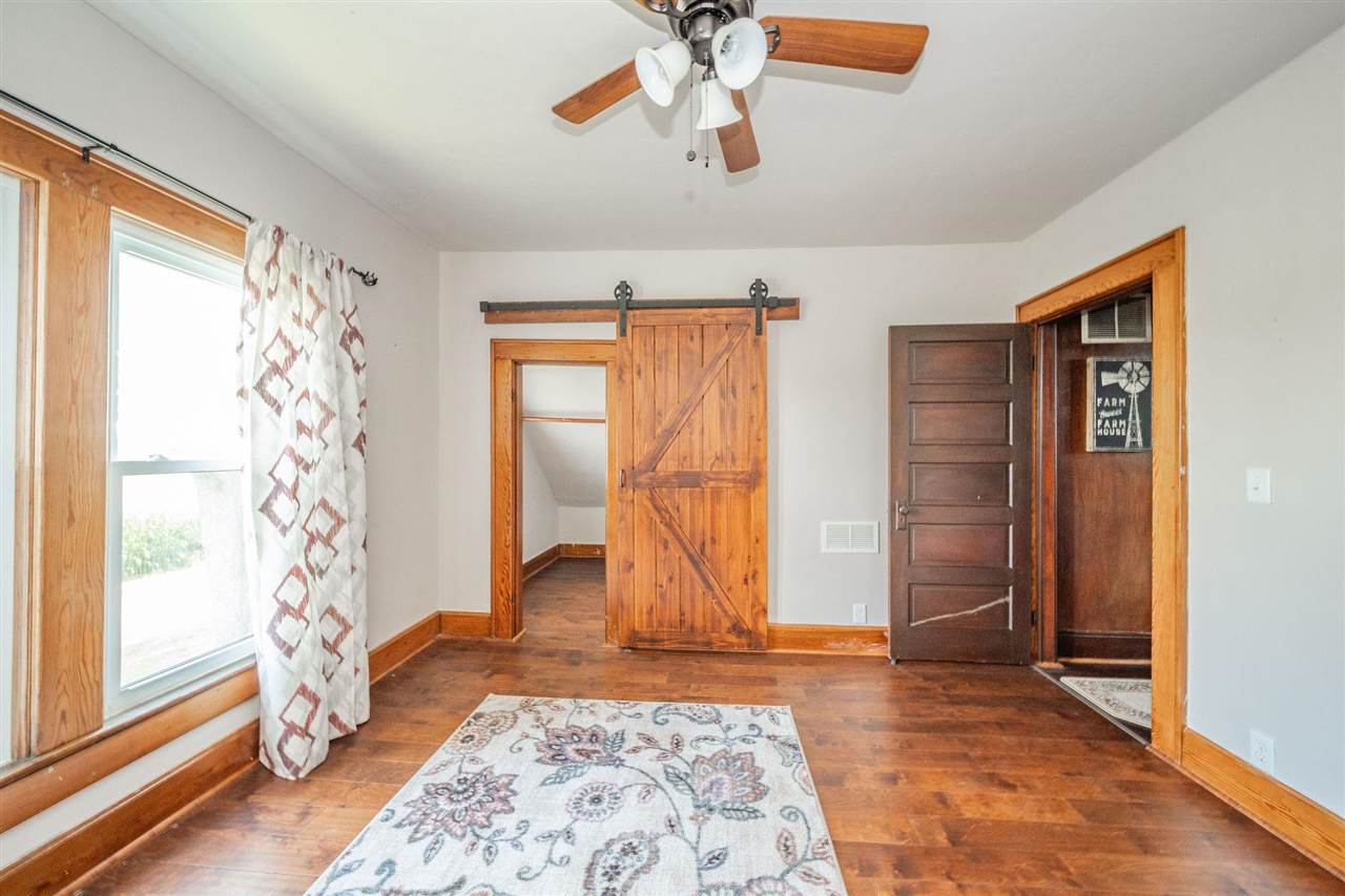 Discover the charm and modern updates in this 4-bedroom, 2-bath home on 5.47 acres in the Blue River Valley School District. Original woodwork and doors flow throughout, adding warmth and character. The main-floor primary suite features a large custom closet, while the upstairs second bedroom offers an en suite bath and oversized closet, perfect for a potential second primary. The kitchen has been refreshed with new laminate countertops, a stainless steel sink, and updated cabinet hardware. Additional recent upgrades include 4 new insulated garage doors (Aug 2024), HVAC with allergen system (June 2024), new roof on the home (July 2024), and a new well pump and electric water heater (2022). The large barn features a metal roof, electrical service, lean-to, hay storage, 2 grain bins and 3 horse stalls. An above-ground pool, complete with a cleaning robot and on-hand supplies, is ready for summer fun. With 2,369 sq ft of living space, multiple suite options, and a mix of historic craftsmanship and thoughtful updates, this home offers flexibility, comfort and room to grow. This property is ready to welcome you home.